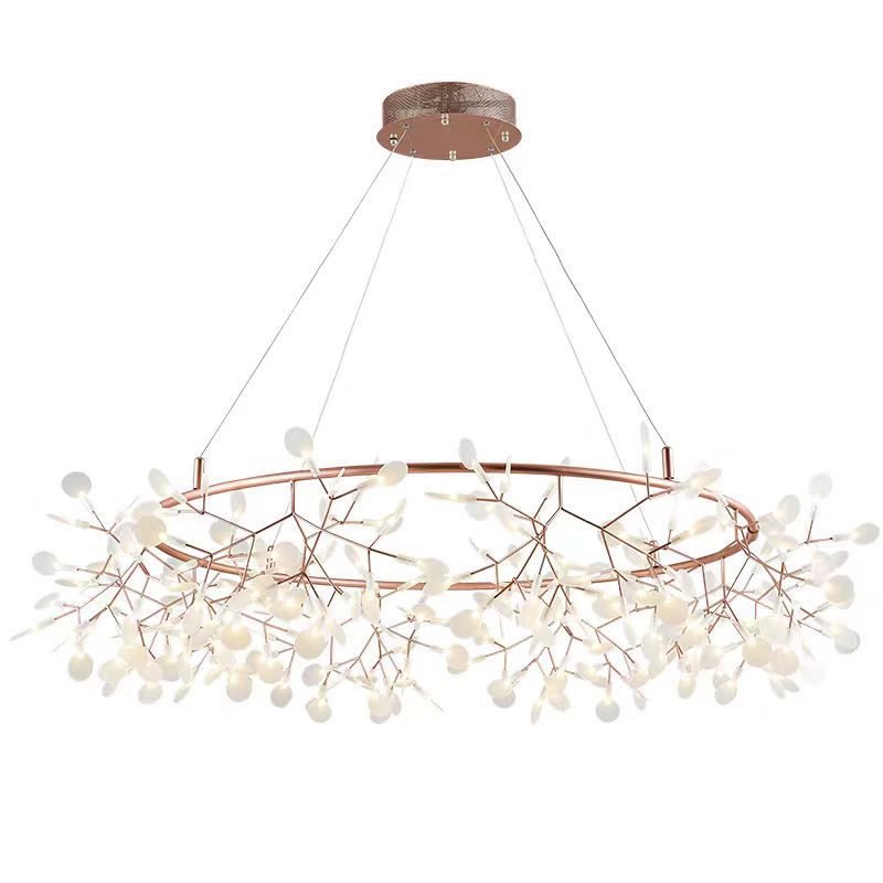 Inspired by the delicate, explosive beauty of the flowering Hogweed plant, the Heracleum Endless transforms your ceiling into a living sculpture of light. Dozens of hand-crafted, translucent polycarbonate “leaves” perch on slender, electroplated copper branches, each leaf lit by a tiny, energy-efficient LED that glows like a firefly frozen in mid-air.