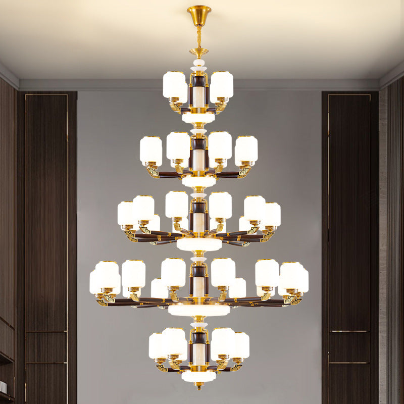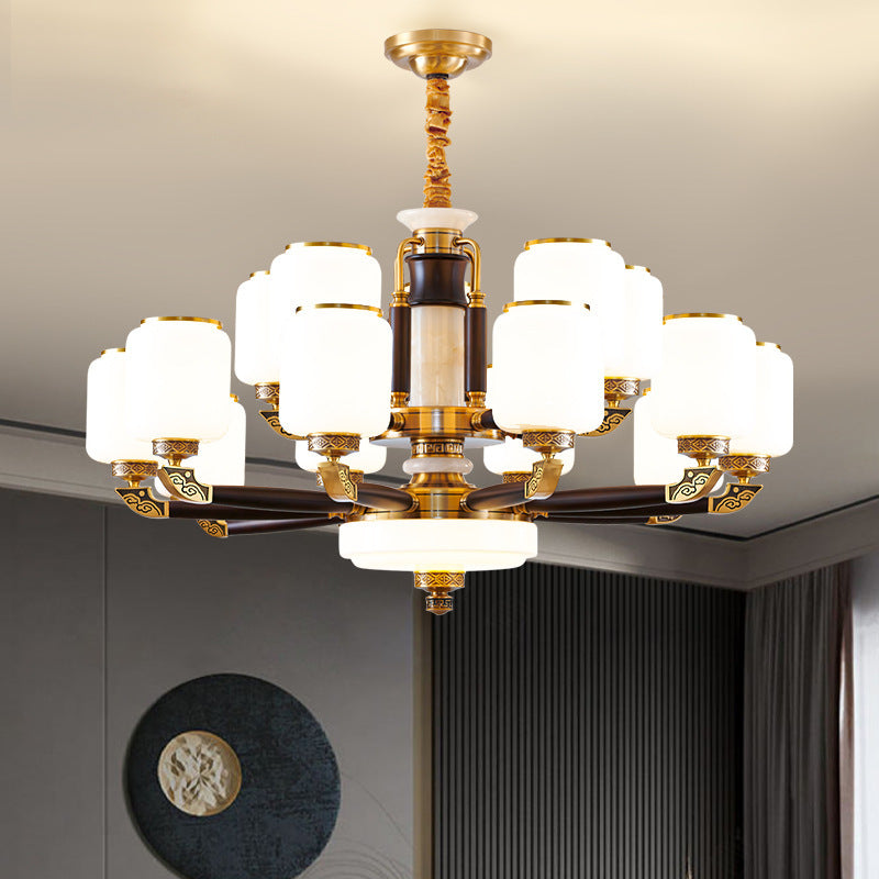 Infuse your home with the refined grandeur of imperial elegance. The Jade Palace Chandelier reinterprets classic Chinese aesthetics for the modern residence, blending natural jade, hand-finished brass, and frosted glass into a masterpiece of balanced luxury.